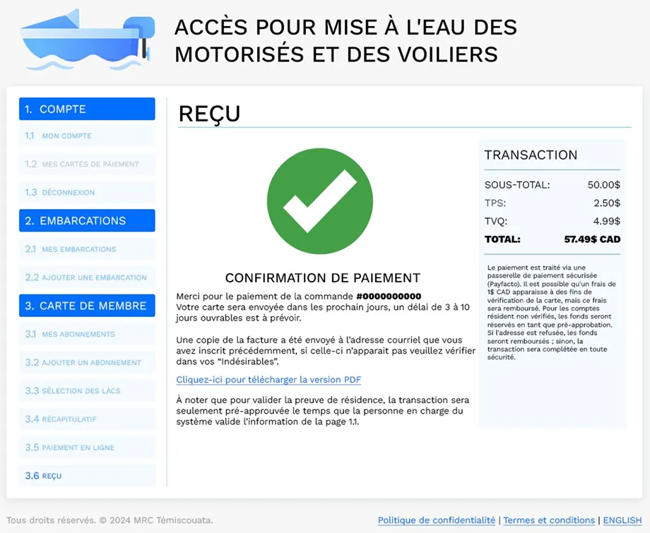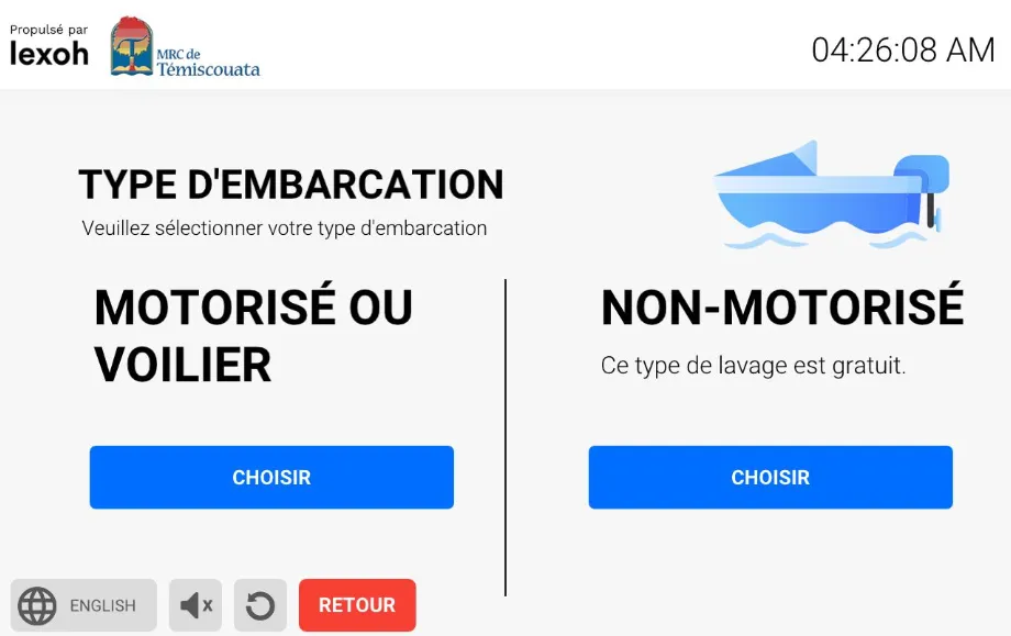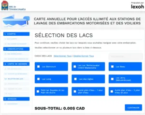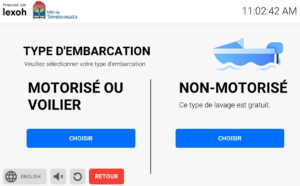 L’inscription du plaisancier peux se faire à l’avance par le site Web ou directement sur le kiosque de la station de lavage. La reconnaissance du statut de citoyen résident ou visiteur est intégré et la tarification s’ajuste en conséquence.