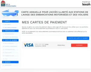 La gestion de vos abonnements n’a jamais été aussi simple et efficace grâce à notre fonctionnalité de gestion des cartes de crédit. Avec notre solution innovante, vous pouvez facilement configurer une ou plusieurs cartes de crédit pour automatiser le renouvellement de vos abonnements pour vos embarcations.