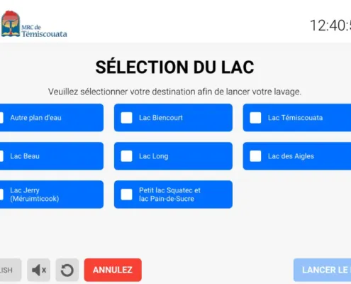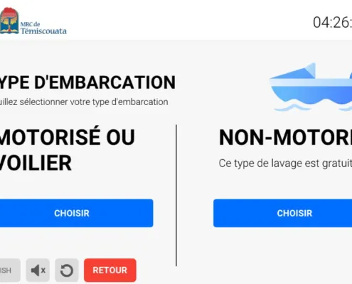 Nos équipements s’intègrent à votre station de lavage existante pour générer un texto (SMS) et un coupon avec un code QR. Nous nous intégrons aussi avec vos barrières pour permettre à l’usager d’accéder facilement à la zone de mise à l’eau avec sa remorque. La sortie de l’eau est incluse et gratuite pour les usagers.