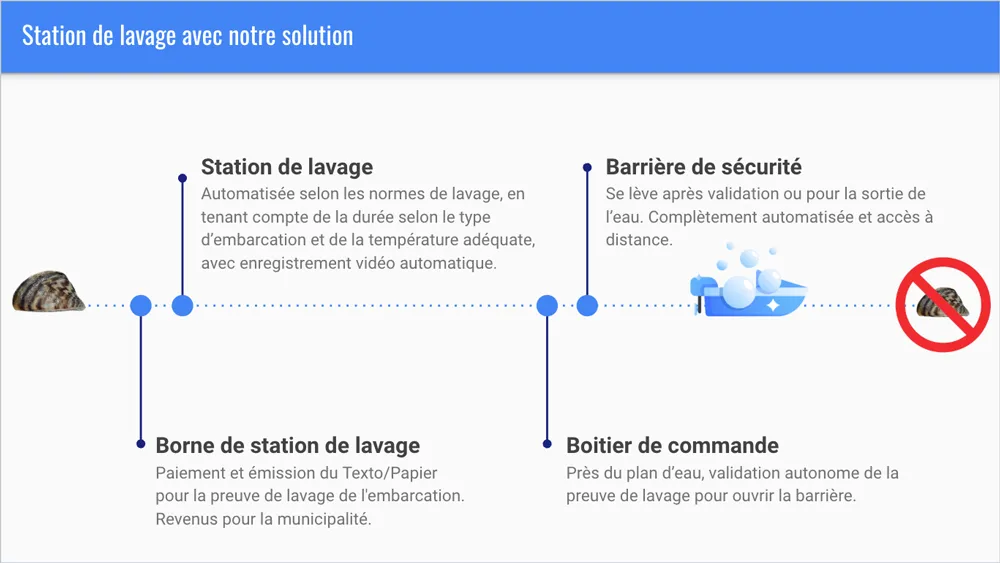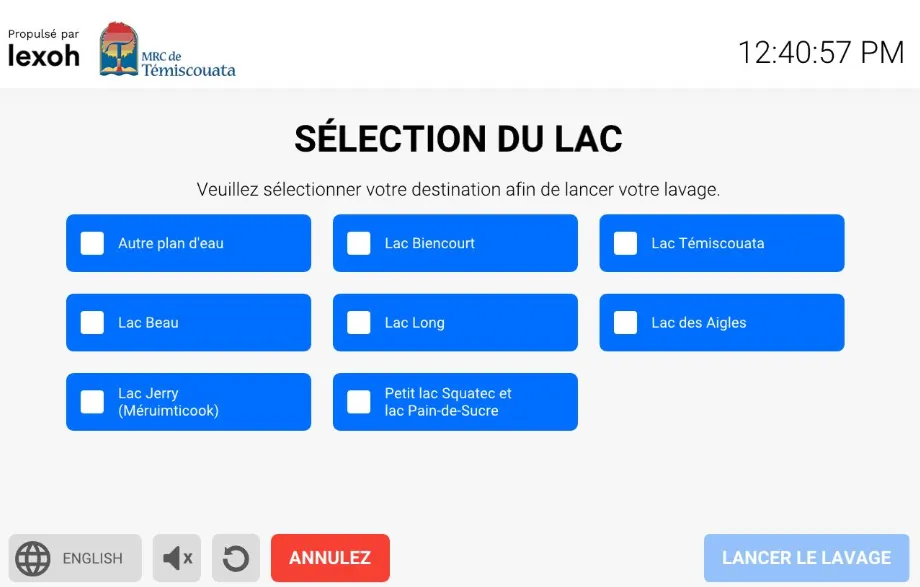 Notre compteur intégré vous garantit un lavage complet et efficace, en affichant clairement la progression du processus à distance. Seule une fois le compteur atteint sa fin, vous recevrez une preuve de lavage officielle, indispensable pour accéder au lac. Ce système vous assure que chaque lavage est effectué dans les règles de l’art, tout en facilitant une vérification simple et transparente.