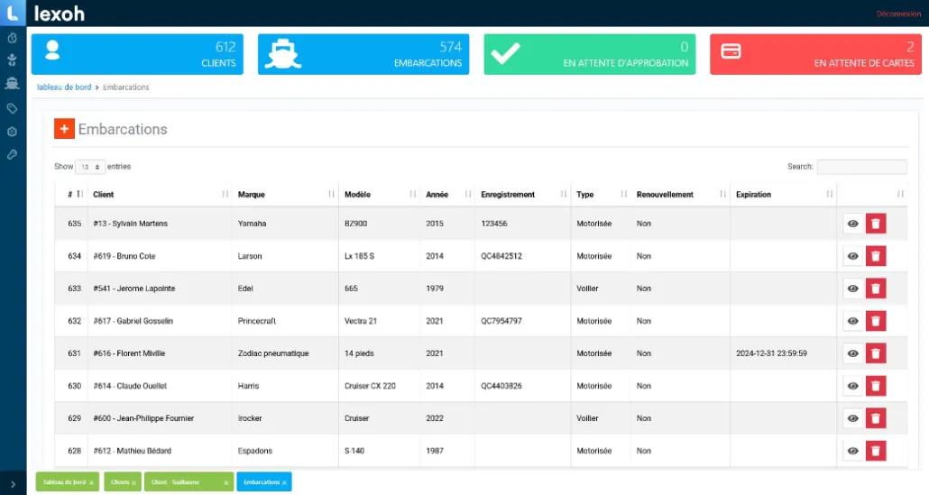 Notre portail client vous permet de gérer facilement vos abonnements annuels pour chaque embarcation. Grâce à cette interface intuitive, vous pouvez consulter, modifier et renouveler vos abonnements en quelques clics. Profitez d’une gestion centralisée et simplifiée de vos services, tout en ayant un contrôle total sur vos informations d’abonnement.
