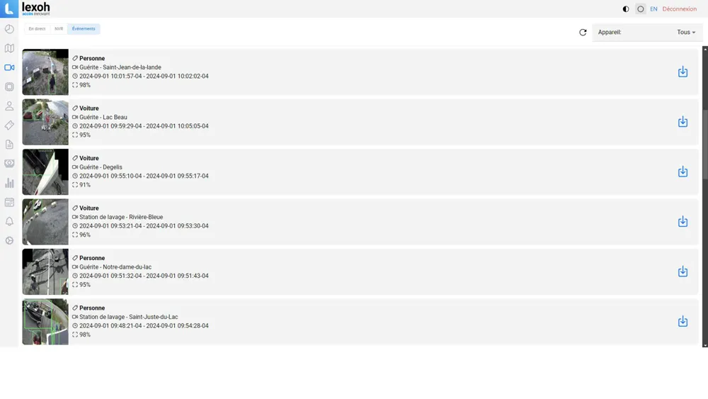 Découvrez la simplicité de retrouver et de consulter les événements capturés par vos caméras grâce à notre système de gestion de clips vidéo avancé. Notre solution vous offre une liste de clips parfaitement organisée pour une recherche et une consultation rapides et efficaces.