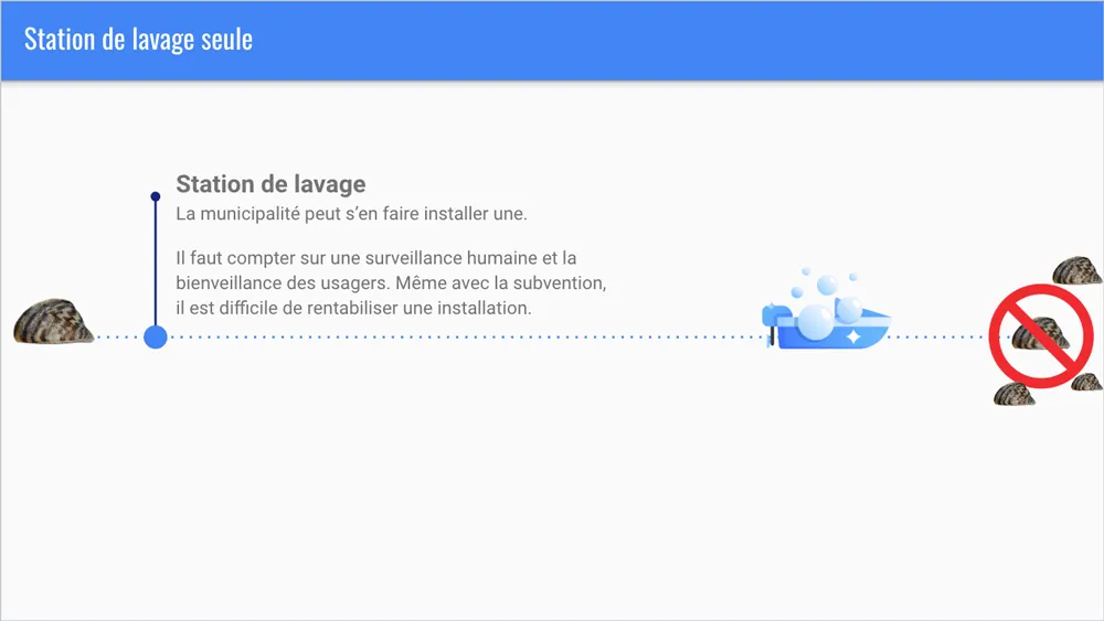 Cette expérience démontre l’importance d’un système de lavage intégré, automatisé et contrôlé, comme celui que nous proposons. Avec nos bornes émettrices de billets et nos barrières automatiques, la municipalité pourrait éviter ces problèmes, tout en assurant un lavage rigoureux et en contrôlant efficacement l’accès aux plans d’eau.